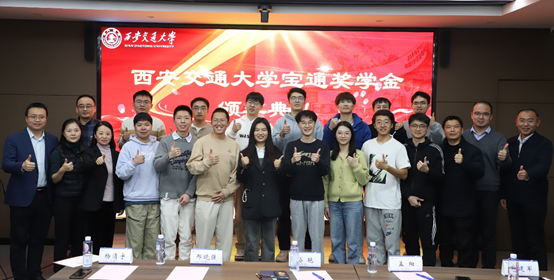 12月11日,2024年度“宝通奖学金”颁奖仪式在中国西部科技创新港举行。无锡宝通科技股份有限公司总裁助理兼人力资源中心总监孙艳、总裁助理兼研究总院院长孟阳,宝通智能副总经理兼技术中心总监吴建军,西安交通大学教育基金会秘书长邢晓强,电信学部自动化学院院长杨清宇,副院长韩德强、鄢超波,研工部副部长胡龙,人工智能学院副书记李杰、院长助理杨勐,教育基金会秘书长助理毛珊,宝通奖学金秘书长周玉洲,自动化学院及人工智能学院相关教师及学生代表参加仪式。仪式由自动化学院副书记杨静主持。