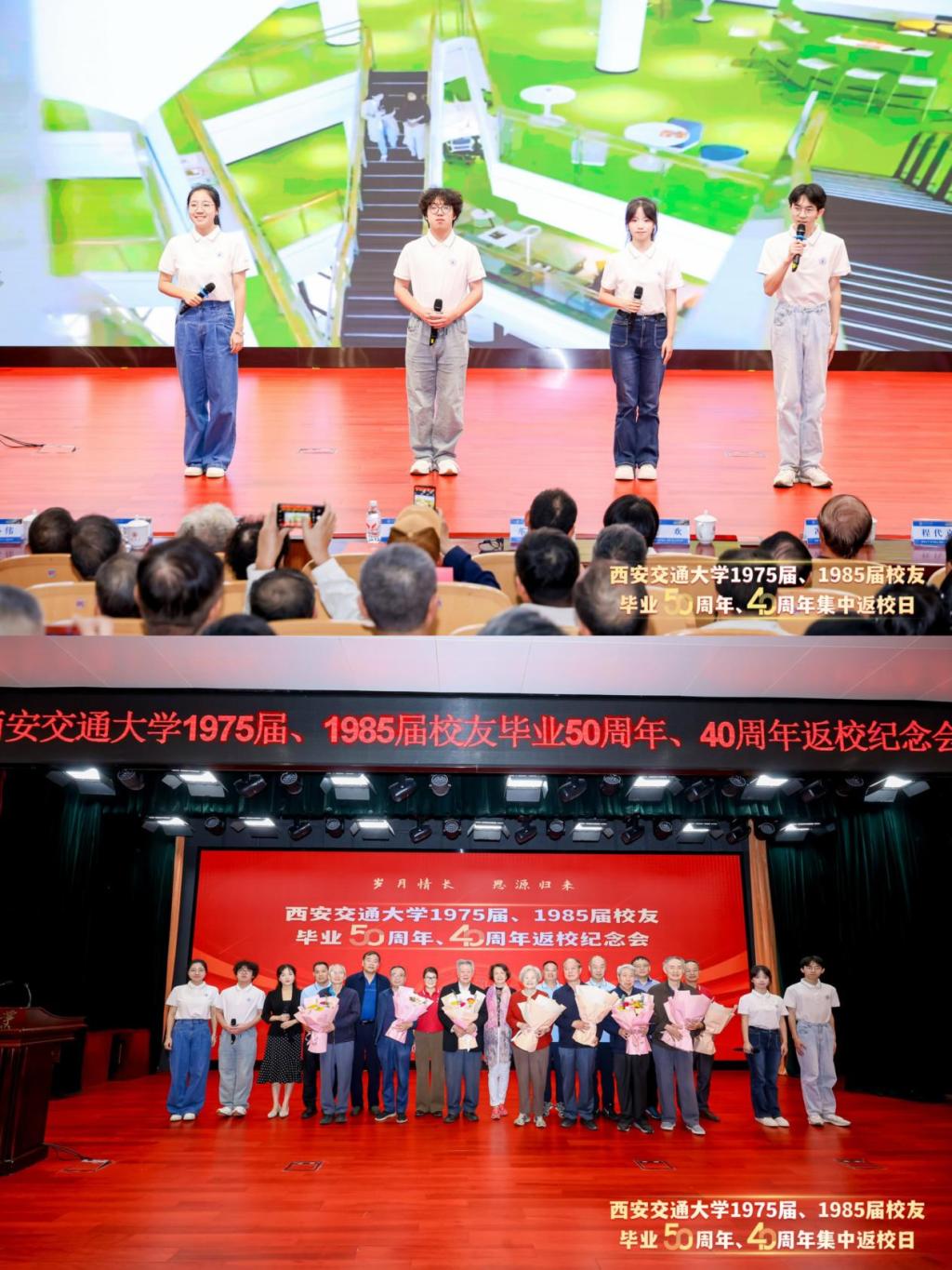 会上,由在校师生精心准备的歌曲《师者》将氛围拉向高潮。随后,校友代表向7位曾任教的老教师献上鲜花,表达了对恩师们的敬意与感激之情,也寄托了对母校未来发展的美好祝福。