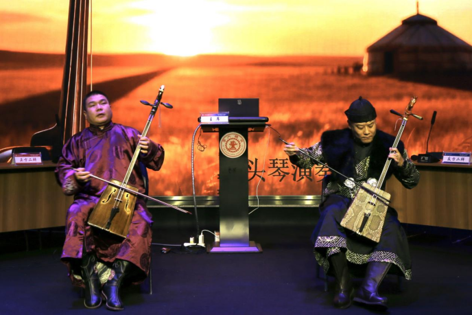 在开场表演环节,马头琴演奏艺术家朝鲁门、唐斯格,为观众们献上了马头琴表演《我的祖国》《鸿雁》《万马奔腾》,赢得阵阵掌声。