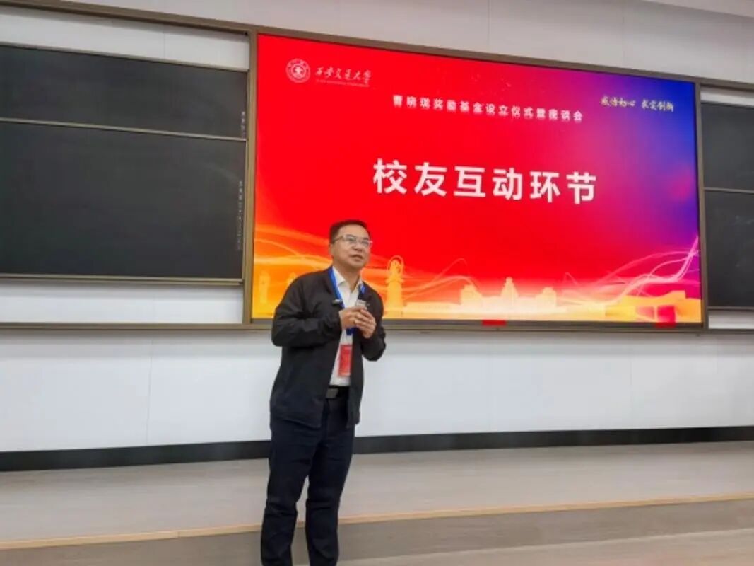 随后进入校友互动环节,捐赠校友代表、获奖学生、班主任代表等围绕“如何通过奖学金推动创新能力培养及相关期望”“对电气学科电介质领域的期待”“对青年学子的寄语与建议”“践行西迁精神的经验心得”等主题展开深入交流。各位代表生动分享了“初心”在专业深耕路上的支撑作用,为学子们传递了“坚守热爱、深耕领域”的成长启示。而获奖学生代表聚焦基金带来的成长力量,表示未来当以自身的行动坚守初心,追求创新,不负校友期待。
