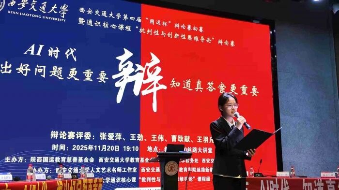 近日,西安交通大学“国运杯”第四届辩论赛初赛暨“批判性与创新性思维导论”课程辩论赛举行。本次辩论赛分上下半场,辩题是“读书行路是为了改变/理解世界”和“AI时代,提出好问题/知道真答案更重要”。比赛中,正反双方妙语连珠、评委老师点评独到,将语言的魅力、思维的碰撞展现得淋漓尽致,也让听众对人生选择和时代命题有了更深入的认识和思考。
