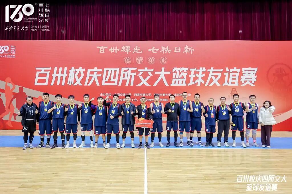 同溯南洋根脉,共襄百卅荣光。为庆祝交通大学建校130周年,一场凝聚情谊的篮球之约在古都西安活力开启!12月12日至14日,上海交通大学、西南交通大学、西安交通大学、北京交通大学四校联合主办篮球友谊赛。赛事由西安交通大学工会与体育学院共同承办,在西安交通大学思源学生活动中心举行。