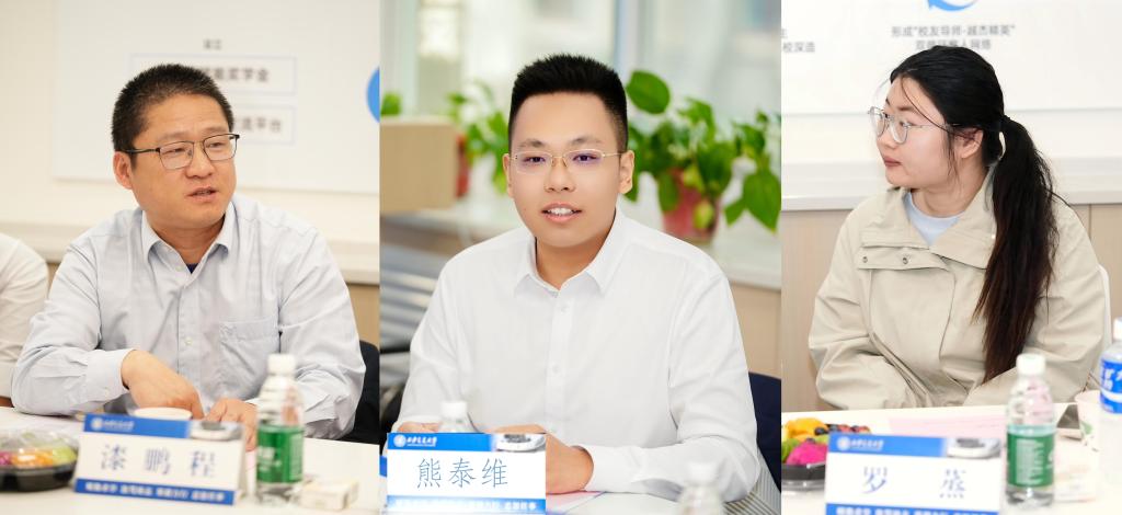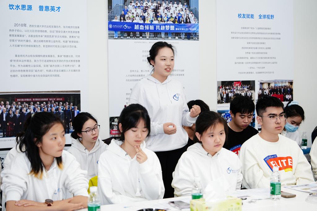 在西安交通大学130周年校庆暨“越杰计划”项目成立八周年之际,4月7日上午,普华和顺集团创始人/董事会主席兼CEO、乐普(北京)医疗器械股份有限公司创始人之一、“越杰计划”校友导师张月娥,深圳明阳电路科技股份有限公司董事长、深圳市西安交通大学校友会会长、“越杰计划”校友导师张佩珂,苏州浩创环境科技有限公司董事长、“越杰计划”校友班主任漆鹏程,浙江省产投集团有限公司投资经理、18级越杰班毕业生熊泰维,越杰校友会秘书长,18级越杰班毕业生罗蒸重返母校,在越杰师生交流中心与学子共话成长。西安交大党委副书记王欢、教育基金会、越杰项目办相关负责人等出席交流会,活动由教务处处长、“越杰计划”项目执行主任王秋旺主持。