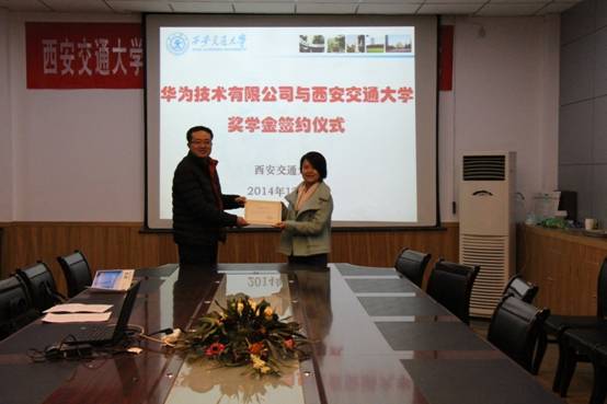 12月5日,西安交通大学学生处副处长李重与华为技术有限公司代表行帆经理成功签约,华为技术有限公司向西安交通大学捐赠十五万元人民币,在西安交通大学设立“华为奖学金、奖教金”。西安交通大学教育基金会秘书长赵卫滨、学生处副处长李重、事务主管朱荣锋等相关人员参与签约仪式。