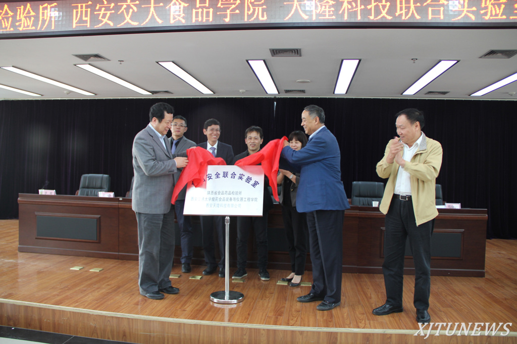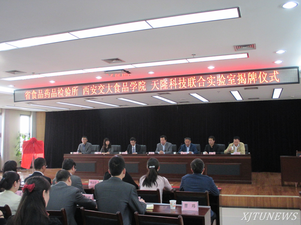 陕西省食品药品检验所、西安交大馥莉食品装备工程与科学学院、西安天隆科技有限公司三方成立食品安全联合实验室,10月21日下午,在陕西省食品药品检验所举行揭牌仪式。西安交通大学蒋庄德院士、陕西省食品药品监督管理局副局长林伟、西安天隆科技有限公司董事长彭年才,以及陕西省食品药品检验所所长刘海静、西安交通大学馥莉食品装备工程与科学学院赵宏教授、西安天隆科技有限公司总经理李明等出席仪式。陕西省食品药品检验所党委书记马康民主持仪式。