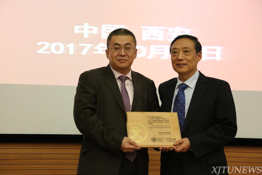王树国校长代表学校对深圳市华景管理咨询有限公司的捐赠表示感谢。王校长赞扬了佟景国校友在企业战略资金方面取得的成就并希望深圳市华景管理咨询有限公司和西安交通大学携手并肩,推进共同发展。