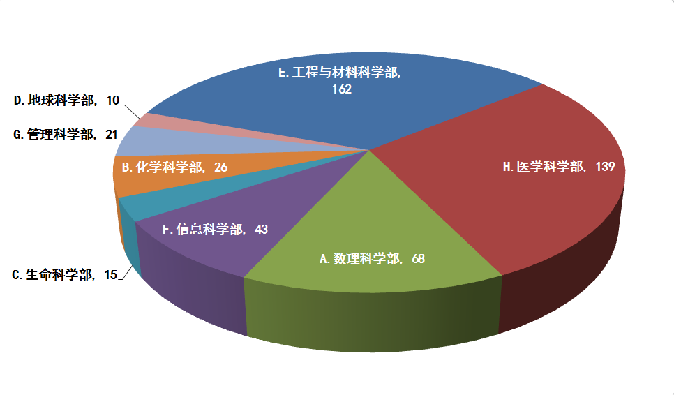 2018年西安交大在基金委各科学部获资助项目数分布图