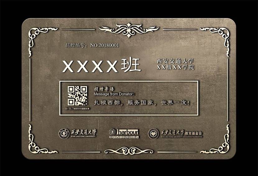 百年树木,校友们将爱校荣校之情和对未来美好的期许倾注在一棵棵树木之中,不忘初心,砥砺前行,共谋发展。我们衷心感谢诸位1988届校友们对创新港绿化工程的支持!诸位校友捐资认领的纪念树,将种植在风景秀丽的创新港园区中;捐赠班级信息将镌刻在纪念铭牌上,镶嵌在班级纪念树旁以作纪念,让它们镌刻着校友们对母校诚挚的祝福于时光中萌发和成长,随着创新港的蓬勃发展,见证西安交大的再次腾飞!