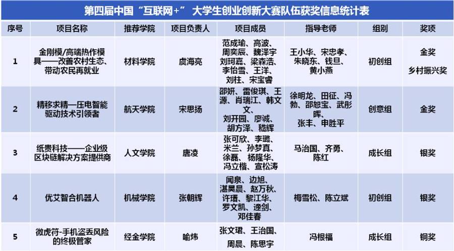 经过激烈争夺,西安交大作品 “金刚模/高端热作模具—改善农村生态、带动农民再就业”脱颖而出获得金奖并获得6个单项奖之一的“乡村振兴奖”,“精益求精-压电智能驱动器技术引领者”获得金奖,“纸贵科技-企业级区块链解决方案提供商”“优艾智合机器人”获得银奖,“微虎符-手机盗丢风险的终极管家”获得铜奖,西安交大分获主赛道及“青年红色筑梦之旅”赛道“先进集体奖”。