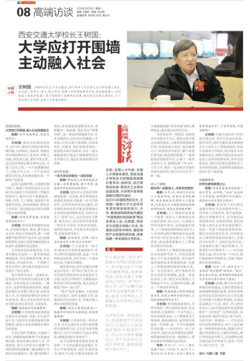 自2014年掌舵西安交大,王树国一直致力于让这所百年老校焕发新的活力。今年,教育部和陕西省共建的“中国西部科技创新港”将迎来师生入驻。在那里,西安交大试图主动融入社会,和最前沿的学术研究、最前端的产业发展同频共振,探索构建一种全新的大学形态。