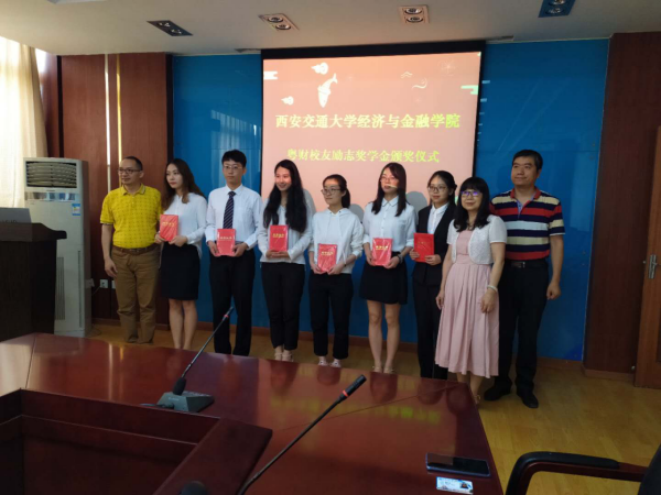 5月24日上午,经金学院在西安交大财经校区举办了2018年度粤财校友励志奖学金颁奖仪式。西安交大广东财经校友会会长刁辉波校友、西安交大经金学院党委书记宋丽颖、团工委书记王平、校友办主任王志斌及获奖学生参加。经金学院副书记周建伦主持颁奖仪式。