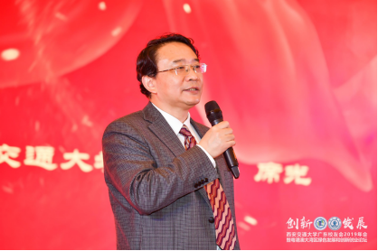 席光副校长代表学校致辞,他高度赞扬广东校友会的工作,肯定了粤港澳大湾区的广大校友在各行各业做出的突出贡献,介绍了近年来母校在人才培养、学科建设、科学研究、创新港建设等方面做出的成绩,希望校友们不断关注、支持母校发展,继承和发扬西迁精神,发挥自身的优势,在推动粤港澳大湾区的国家战略中,贡献交大人的智慧和力量。