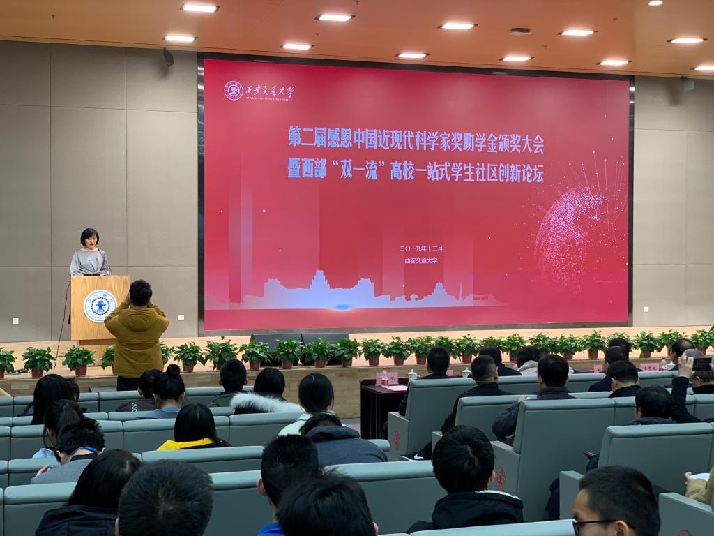 12月8日,第二届感恩中国近现代科学家奖助学金颁奖大会暨西部“双一流”高校一站式学生社区创新论坛在中国西部科技创新港举行。西安交通大学党委副书记宫辉、校长助理程建设,复旦大学党委副书记尹冬梅,内蒙古大学党委副书记李秀良,西藏大学副校长白玛次仁出席大会,西部27所“双一流”高校的学生工作部门、学校资助管理中心等单位负责人,各高校带队老师和获奖学生代表等参会。西安交通大学电信学部信息与通信工程学院副院长陈娟教授主持会议。