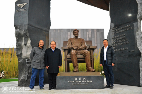 宫辉副书记、赵卫滨秘书长和贾濯非教授在雕像前合影
