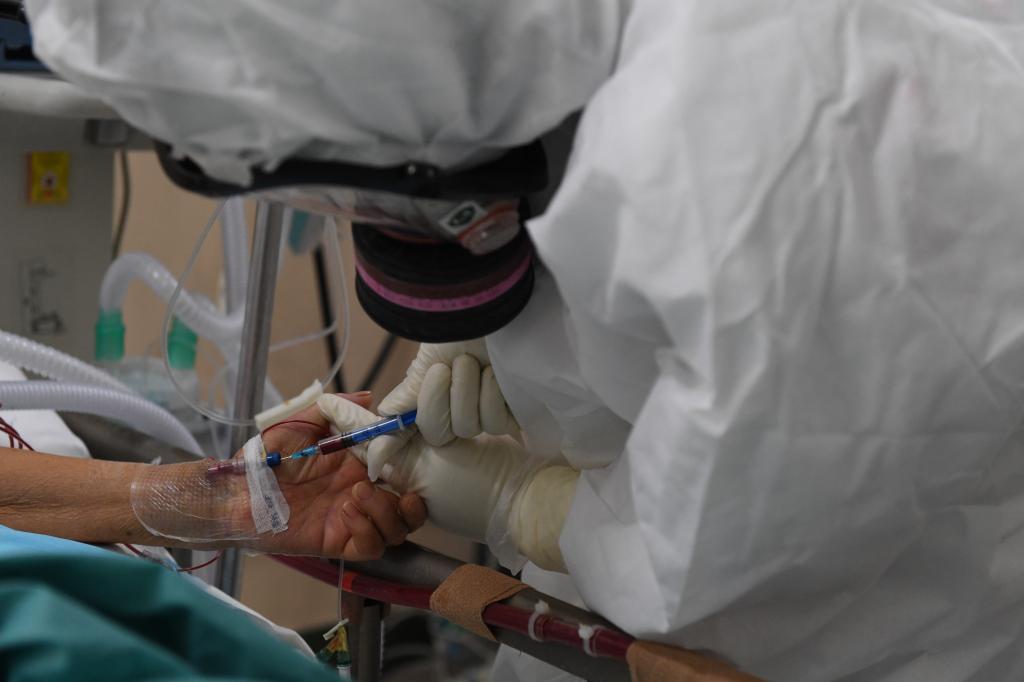 此后的日子里,小组的战士们每天都要穿着层层的防护服、佩戴头套、护目镜或防护面罩进出重症病人的病房,“因为口罩和护罩的原因,我们行动起来会有种窒息感,在里面呆久了全身是汗,衣服经常由内到外的湿,汗都流到嘴里了”,小组成员肝胆外科ICU医生李娜回忆道。