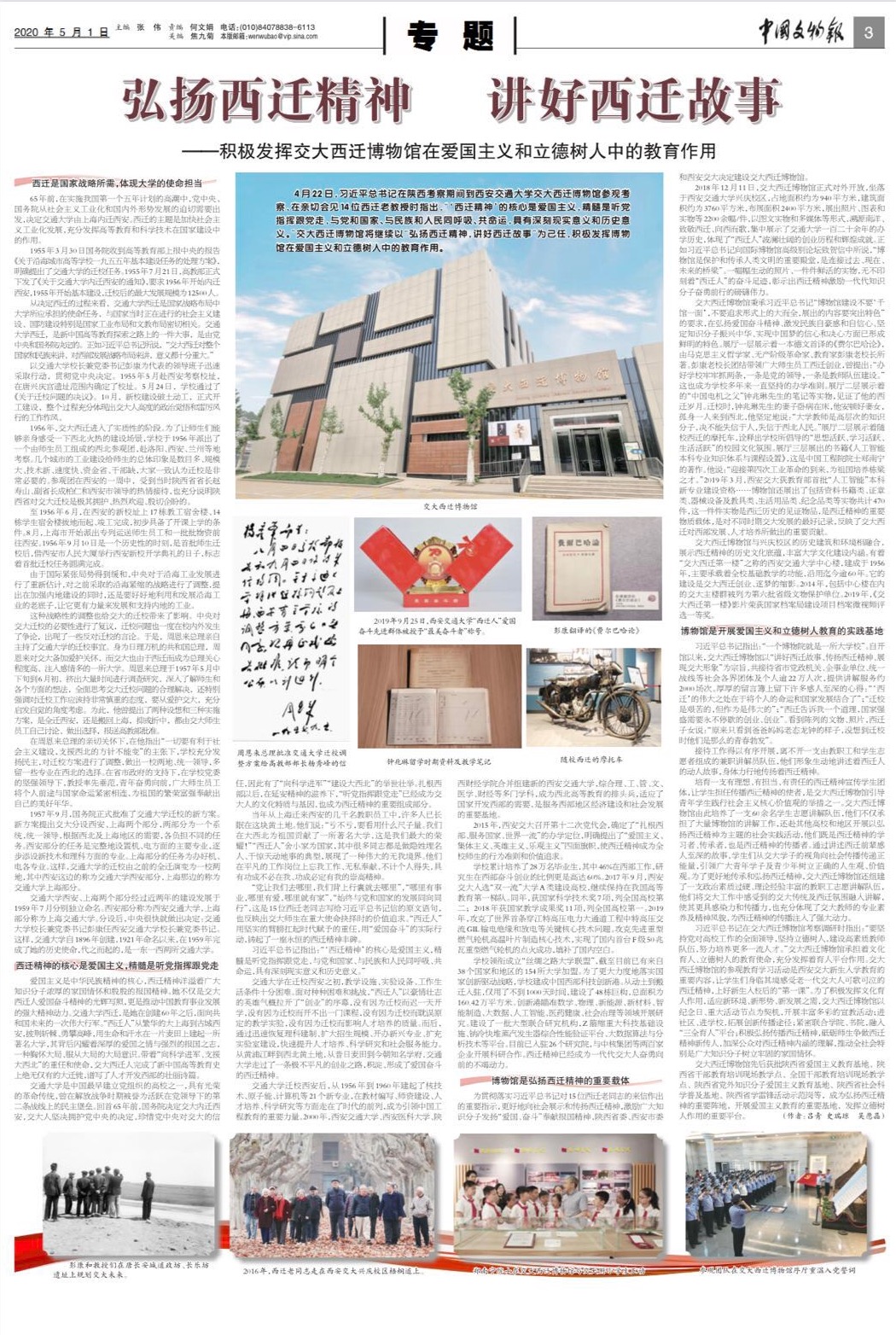 习近平总书记在交大西迁博物馆考察调研时指出:“要坚持党对高校工作的全面领导,坚持立德树人,建设高素质教师队伍,努力培养更多一流人才。”交大西迁博物馆承担着文化育人、立德树人的教育使命,充分发挥着育人平台作用。交大西迁博物馆的参观教育学习活动是西安交大新生入学教育的重要内容,让学生们身临其境感受老一代交大人可歌可泣的西迁精神,上好新生入校后的“第一课”。为了积极发挥文化育人作用,适应新环境、新形势、新发展之需,交大西迁博物馆以纪念日、重大活动节点为契机,开展丰富多彩的宣教活动;进社区、进学校,拓展创新传播途径;紧密联合学院、书院,融入“三全育人”平台;积极弘扬传播西迁精神,砥砺师生争做西迁精神新传人,加深公众对西迁精神内涵的理解,推动全社会特别是广大知识分子树立牢固的家国情怀。