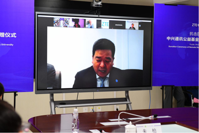 中兴通讯董事长李自学代表中兴通讯的校友感谢母校的培养,他表示,在全球人民众志成城抗击疫情的时刻,中兴通讯将最新的通讯科技融入全球疫情防控的战役中,为远程诊疗提供有力支撑,中兴通讯将与中意双方并肩“抗疫”,以实际行动谱写中意友谊新篇章。