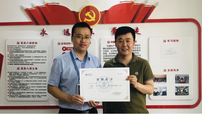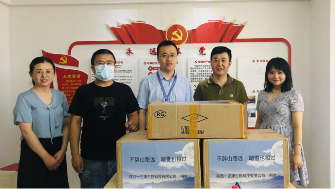 2020年6月3日,陕西一正康生物科技有限公司寇文锋一行三人来到西安交通大学教育基金会,为教育基金会捐赠100个测温枪,用于学校疫情防控工作。西安交通大学教育基金会副秘书长邢晓强参加捐赠仪式。