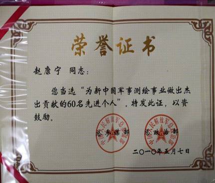 30多年里,赵康宁历经院校、科研所、基层部队和总部机关多种岗位锤炼,先后参加并组织完成北斗导航系统建设与应用等近十项主要型号装备研制、重点科研课题及工程建设项目,为国防和经济社会建设尽了一份交大学子的责任和义务。他与团队成员研究制定了卫星导航定位应用的有关法规、规章和标准规范,论证、拟制北斗导航系统研制总要求、发展规划以及系统运行、资源调配、设备使用等管理规章规范,为中央决策北斗开放民用、产业与政策调整、中长期发展目标规划提供依据。