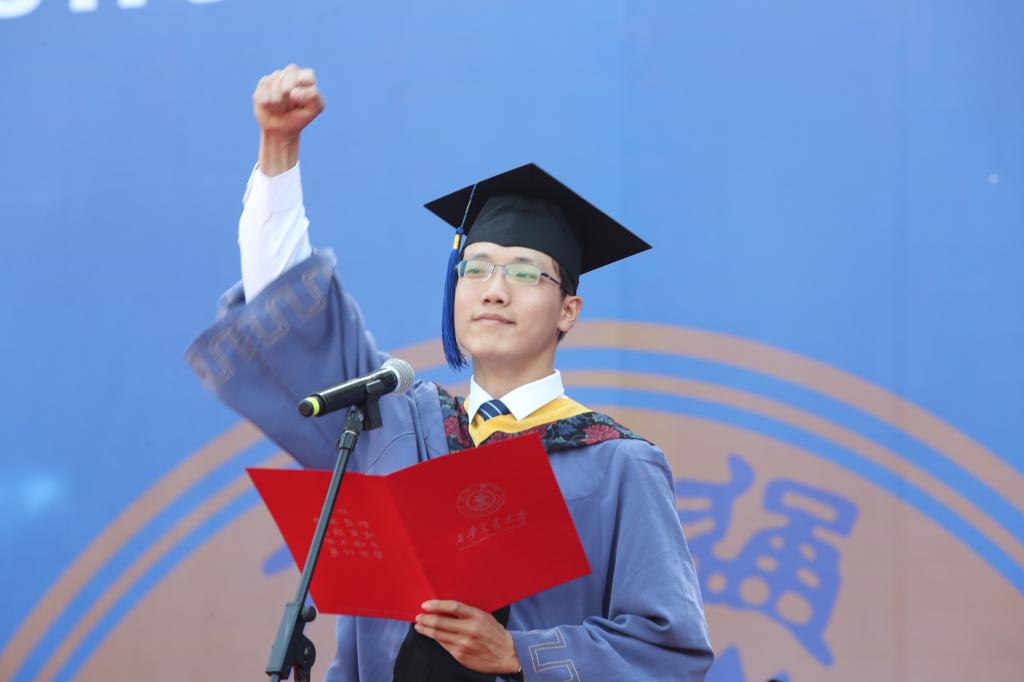作为毕业生发言代表的崇实书院金禾61班刘天皓分享说:“第111届毕业典礼,“1”份回忆昨天,回忆过去六年在交大挥洒过的青春,感恩父母无私的付出,感恩有良师相伴,益友相携,感恩母校对我的栽培,感恩党和国家的哺育。“1”份沉浸今天,学习校友的人生经验,聆听校长的谆谆教诲;家国情怀,德行才智,在背上行囊出发之前,我在交大上了最后也是最重要的一课。“1”份憧憬明天,宇土茫茫,山高水长。带着母校的馈赠,交大学子必砥砺前行,为世界之光!”