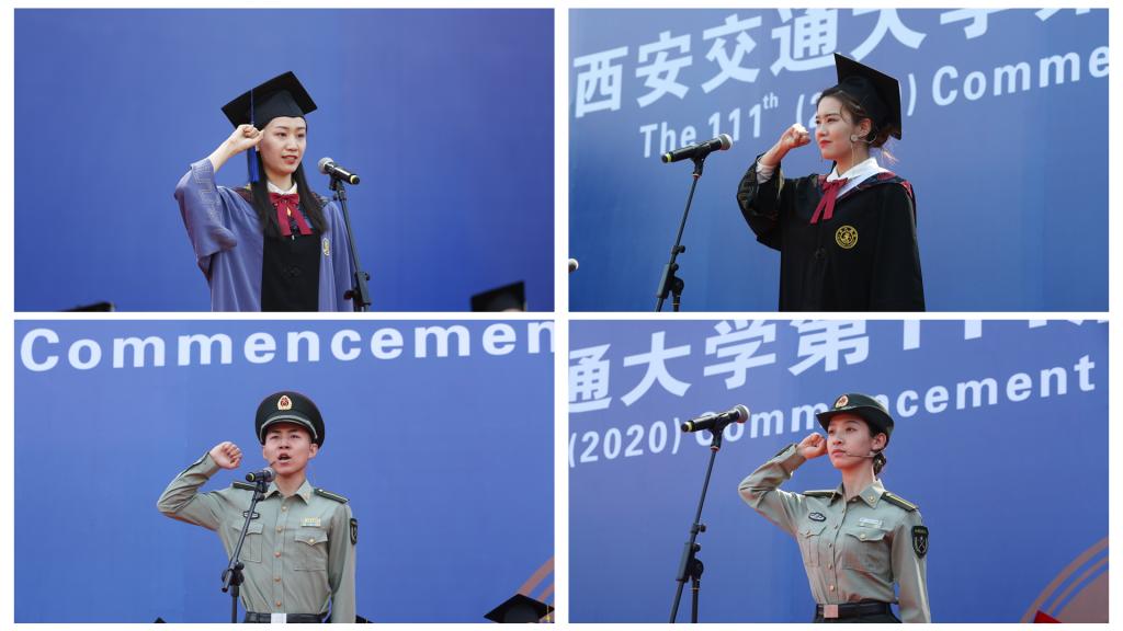 作为毕业生领誓人的仲英书院ACCA61班王羽雯说:“毕业不是我们青春的结束,而是我们下一个奋斗阶段的开始,我在这次毕业典礼上,作为全体毕业生的领誓人,非常自豪也深有感触,作为西安交大的毕业生,我们应该在以后的人生中把西迁精神和为国奉献的精神继续发扬光大,引领我们一生的事业!”