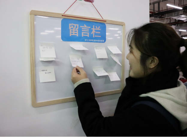 考虑到云南地区的美食风味偏咸辣重口,为了便于李阿姨及时了解到同学们对云南特色米线的改进建议,硕9043党支部的全体党员向李阿姨捐赠了一套留言板。