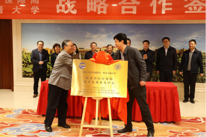 1月15日下午,陕西省医疗保障局副局长雷耀堂、赵跃虎、王睿民一行到访中国西部科技创新港,与西安交大签署战略合作协议并为陕西省医疗保障改革发展研究中心揭牌,西安交大校长王树国,副校长席光、颜虹出席。