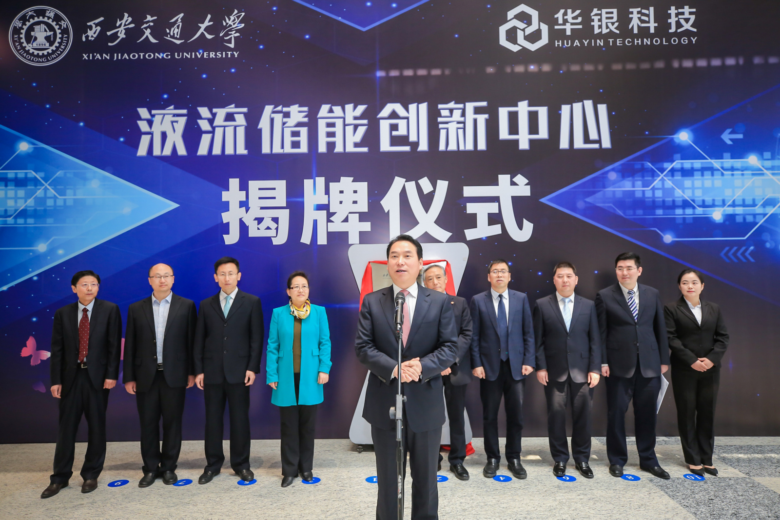 4月8日,西安交通大学与陕西华银科技股份有限公司合作共建的液流储能创新中心在中国西部科技创新港揭牌。西安交通大学党委常委、副校长颜虹,安康市市长赵俊民、科技局局长张志群、陕西华银科技股份有限公司董事长郑建伟出席仪式。西安交大科教前沿党总支书记李成福主持仪式。