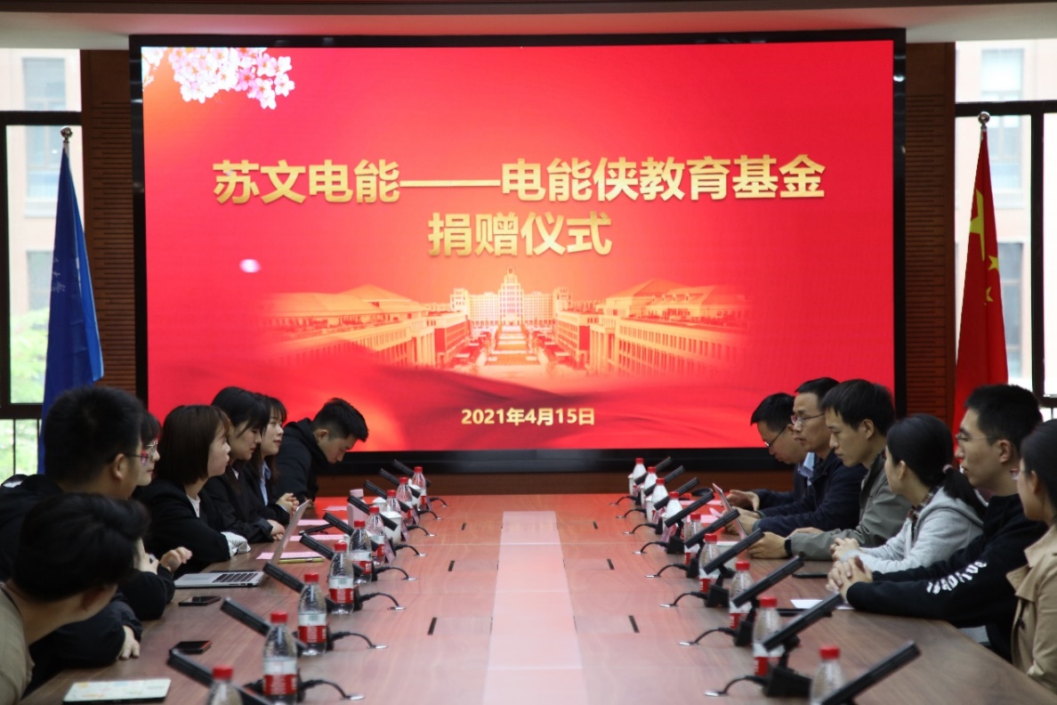 2021年4月15日,“苏文电能——电能侠教育基金”捐赠仪式在西安交通大学创新港校区隆重举行。苏文电能科技股份有限公司人力资源总监金苗,西安交通大学教育基金会副秘书长邢晓强、电气工程学院党委副书记宋杰、办公室主任王超、团工委书记罗文成,苏文电气人力资源部主管刘静,招聘经理金亚国、施余霖出席捐赠仪式,电气学生代表共同参加。