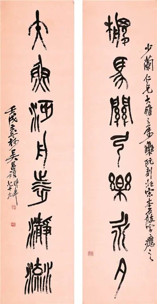 其楹联墨迹展示出前人笔底乾坤及勃勃生机,作品所蕴含的浓厚的人文气息亦成为这一时期书法的重要特质。它既是中国书法史的真实再现,也是人文艺术情怀的彰显。虽岁月更迭,书迹却流光溢彩,笔墨如新,是为楹联饕餮,更为中国文化之群山胜揽。