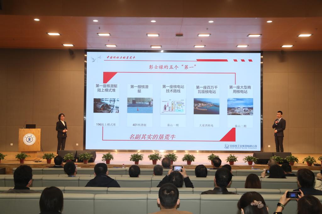 中国核动力研究设计院宣讲团成员刘晨曦、刘羽报告了中国工程院院士彭士禄的杰出科技成就与感人事迹,报告题目为《彭士禄——中国核动力的垦荒牛》。彭士禄获2017年何梁何利基金“科学与技术成就奖”,他开创了我国核电的五个第一:第一座核潜艇陆上模式堆,第一艘核潜艇,第一座核电站技术路线,第一座百万千瓦级核电站,第一座大型商用核电站。彭士禄为我国核电持续发展作出重要贡献,是我国核潜艇、核动力事业的主要开拓者,是我国和平利用核能的领军人。彭士禄院士常说自己一辈子只做了两件事,一是造核潜艇,二是建核电站。而这两件事,一件关乎国家国防建设,一件关乎国家经济发展,都具有非常重要的意义。