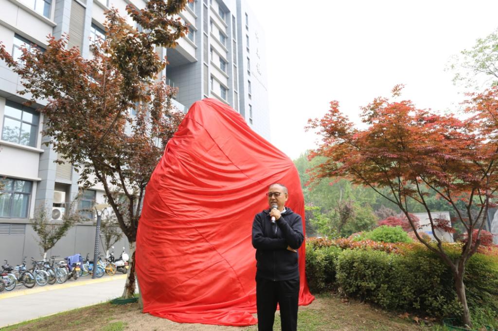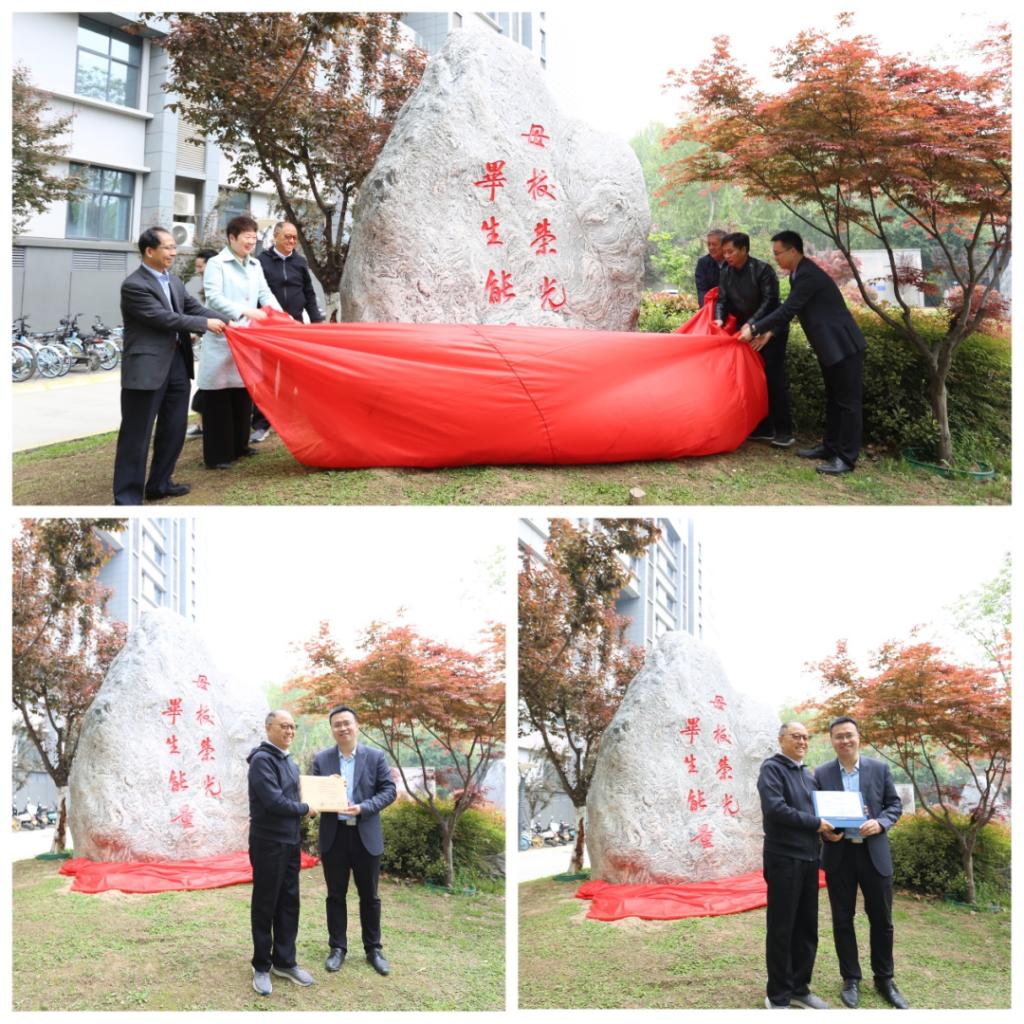 在现场人员共同见证下举行了景观石揭幕仪式。邢晓强副秘书长为校友代表赵庆洲颁发捐赠纪念铭牌与捐赠证书。
