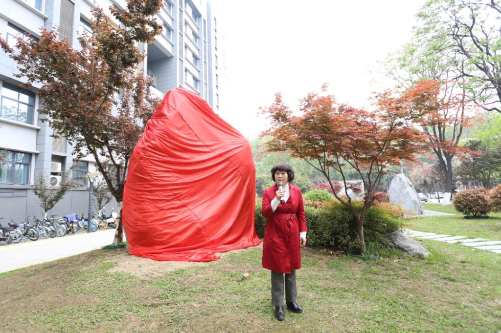 景观石顺利落成,首先是获得学校校友部的全力支持和帮助。当我们把此事给校友部白小萱主任说明时,她立即请校友部周伟老师专项负责与我们联系。周老师很快向学校规划部、宣传部、后勤保障部联系,经三部门同意后,2020年10月正式提交申请报告,并获得三部的同意批复文件。宣传部对石刻文字提出宝贵的修改意见。此事也得到材料学院的高度重视。院党委潘希德书记、院办主任李杰老师亲自和我们一起斟查安装地址,院办提供了许多的帮助和大力的宣传。人文学院李慧教授在百忙中,挤出时间和我们到周至石場选景观石,还请来了人文学院书法系系主任王劲老师书写石刻文字,艺术设计系刘令贵老师完成了景观设计方案。他们尽心尽力,高质量高标准地进行设计和书写,不厌其烦地多次进行修改和制作。他们为学校的亊情不惜牺牲自已的休息时间,这种精神让我们深为感动!