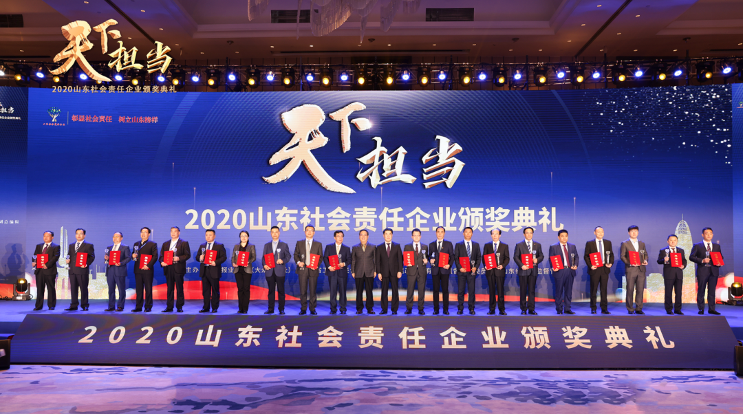 2021年4月23日,由山东省人民政府国有资产监督管理委员会、山东省市场管理局、山东省工商业联合会、大众报业集团联合主办,以“彰显社会责任,树立山东榜样”为主题的2020山东社会责任企业颁奖典礼在济南云鼎大厦盛大启幕。山东省人大常委会副主任,山东省工商业联合会主席、山东省总商会会长王随莲,大众报业集团(大众日报社)党委书记、董事长、社长梁国典,山东省人民政府国有资产监督管理委员会党委书记、主任张斌,山东省工商业联合会党组成员、副主席高洪岩,山东省市场监督管理局党组成员、副局长于智勇等出席。