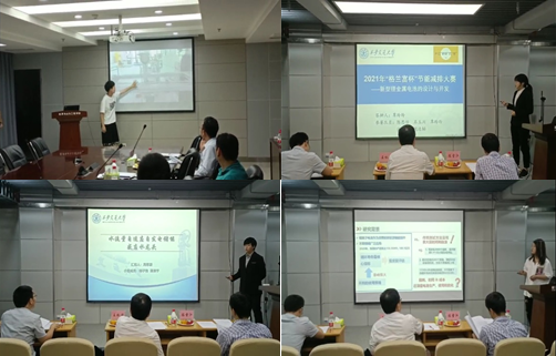 决赛答辩在三个分会场中有序进行,同学们紧扣赛事主题----“节能减排,绿色能源”介绍团队所做工作以及取得成果,包括实物制作、模型、软件设计、社会实践调研报告等,体现新思想、新原理、新方法以及新技术。