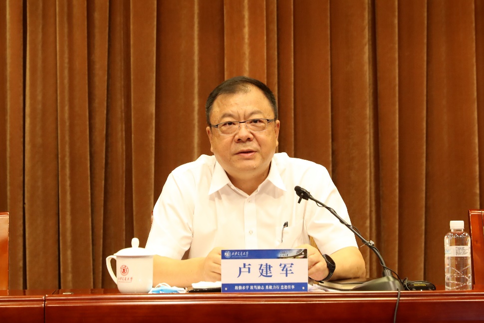 今年时间已过半,各项任务完成得如何?对照同期同比完成情况,卢建军从党的建设全面加强、各项事业取得可喜成绩、深入开展党史学习教育、四项整改、四个领域专项清查等进行了回顾总结,深入检视了目前存在的短板和弱项,并对下半年工作提出八点要求:一是政治建设再强化,要以政治建设为统领,进一步加强组织建设和干部队伍建设,提升领导干部从政治视角看问题的能力;二是思政实效再提高,要深入挖掘各学科、专业的思政元素,充分发挥课程思政的作用;三是队伍建设再加强,要进一步加强基础教师队伍建设,在党管人才的前提下,提升人才水平和层次,加大国际化人才引进力度,同时创造良好的生态环境,为人才服好务,做到严管与厚爱并重;四是学科体系再优化,要持续加强基础学科、基础研究工作,充分发挥领军、团队、平台、项目、成果、贡献的支撑作用;五是产教融合更深入,要扎实推进教研一体、学科交叉、产教融合、协同育人、联合攻关,在创新中培养创新人才,服务经济社会高质量发展;六是人文教育更有效,要坚持人文与科学并重,创造良好的人文环境,加强人文关怀;七是服务保障更有力,持续做好“我为师生办实事”,解决师生“急难愁盼”问题,提高管理育人、服务育人功能;八是勤政廉政更有力,持续抓好党风廉政建设,构建一体推进不敢腐、不能腐、不想腐的体制机制。