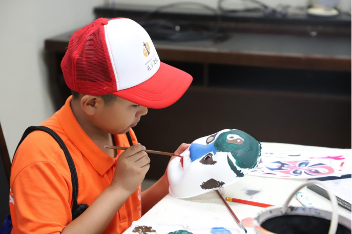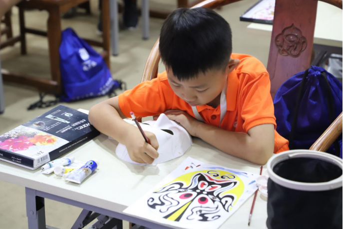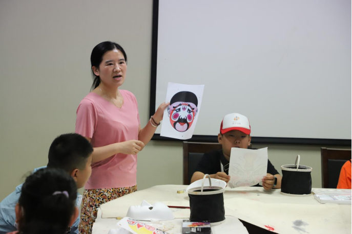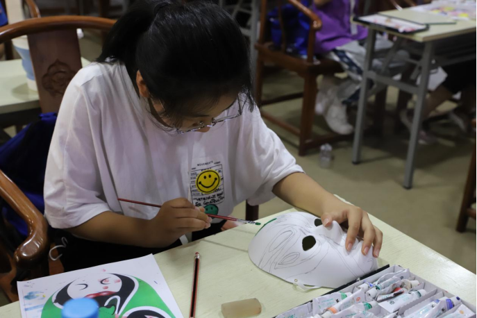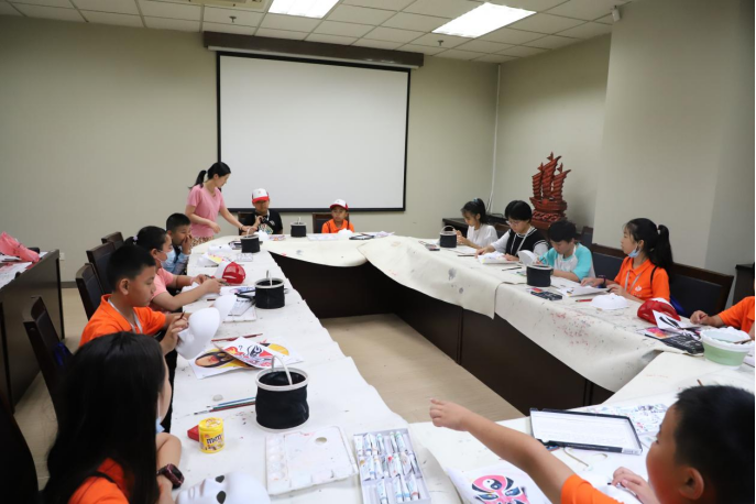 随后,带队老师组织营员们开展了绘制秦腔脸谱活动,让营员们深入了解秦腔脸谱的文化内涵,亲身体验具有浓郁地方色彩的戏剧艺术魅力。营员们认真投入,充分发挥想象力,绘制各色的秦腔戏剧脸谱,不一会儿,每个孩子都绘制出了属于自己的秦腔脸谱并向小伙伴们展示了自己的作品。最后,大家纷纷拿着自己的作品一起合影留念,并结束了一天的研学旅程。