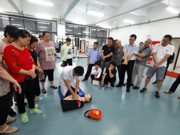 随后,交大二附院医生向在场师生及兴庆校区、创新港校区的物业人员代表开展急救常识和AED操作培训,并进行模拟演示及现场练习指导。