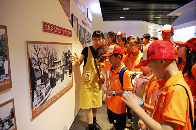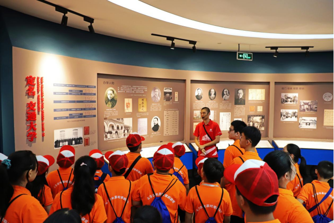 志愿者向学子们介绍南洋公学的创始人、交通大学第一任校长盛宣怀