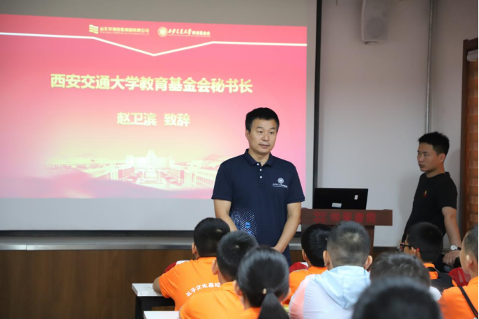 孙峰表示,很荣幸能和同学们相遇在千年古都西安,作为十三朝古都,西安的历史文化悠久,西安交通大学作为一所百年名校,具有深厚的文化底蕴与优良的办学传统。学校教育基金会为此次夏令营活动安排了丰富而充实的行程,希望同学们珍惜此次研学机会,在6天的行程中用心感受博大精深的中华文化与西安悠久多彩的历史文化,体会西安交通大学胸怀大局的“西迁精神”,能够有所收获,有所成长,度过这个充实且有意义的夏令营时光。
