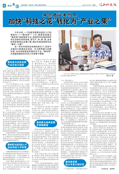 更多杰出科技英才汇聚陕西,加快“科技之花”转化为“产业之果”。“秦创原创新驱动平台作为全省创新驱动发展总平台和创新驱动发展总源头,是打破科技优势与经济发展转化堵点的关键之举,聚焦着陕西人的目光与期望。”蒋庄德说。