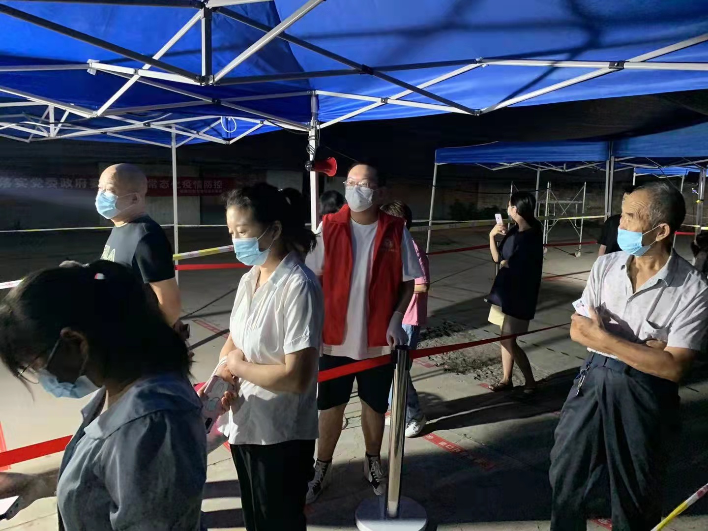 此外,刘邦还承担了搬运器材,给志愿者们分发午餐、晚餐之类的工作。不忙的时候,他们还劝导居民进行检测、组织排队、进行上门取样等。