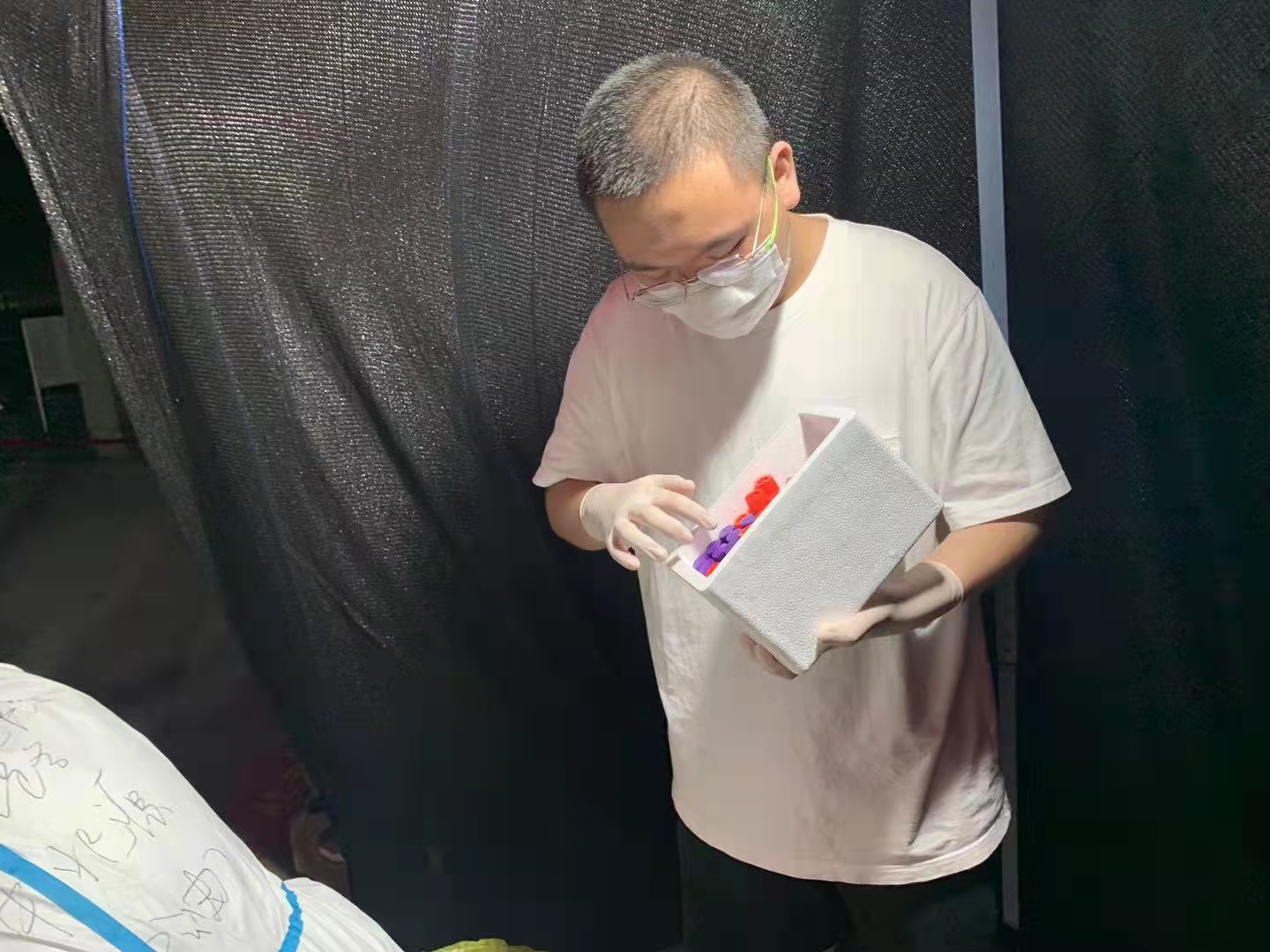 8月底,天气炎热,刘邦主动报名参加了家附近的新华路街道社区志愿者工作。他和另外一位志愿者主要负责检测样本封存、打包装箱工作。工作的时候需要全程佩戴医用口罩、手套,清点核对检测样本,并完成样本封箱,然后把样本交给下一级转运人员。他们每天封箱的样本大约有4700多份,工作量还是挺大的。