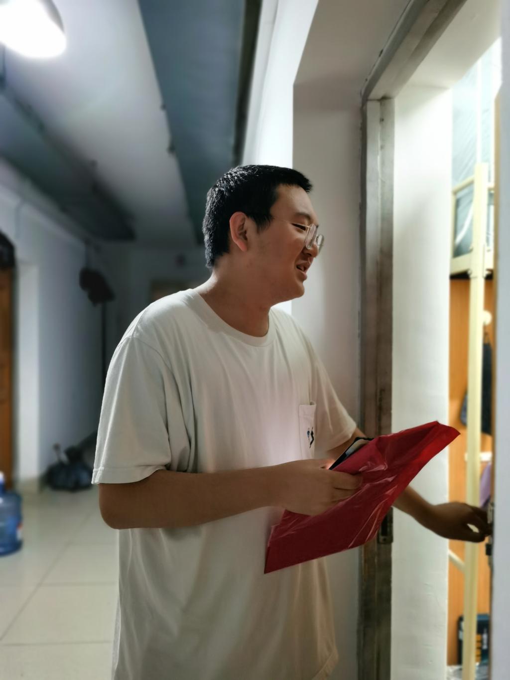9月29日晚,刘邦正挨个宿舍给同学们分发国庆加餐券。