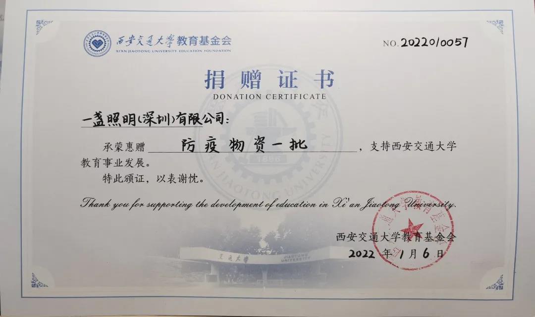 西安交通大学向每一位在本次抗击疫情的过程中献出爱心、付出努力、做出贡献的社会各界爱心企业、人士致敬!是你们用实际行动强力支援着西安疫情防控工作,是你们用真挚淳朴的热情温暖着交大学子的这个寒冬,充分体现了“一方有难八方支援”的互助互爱精神,充分展现了现代企业服务社会、奉献爱心的政治自觉和家国情怀。