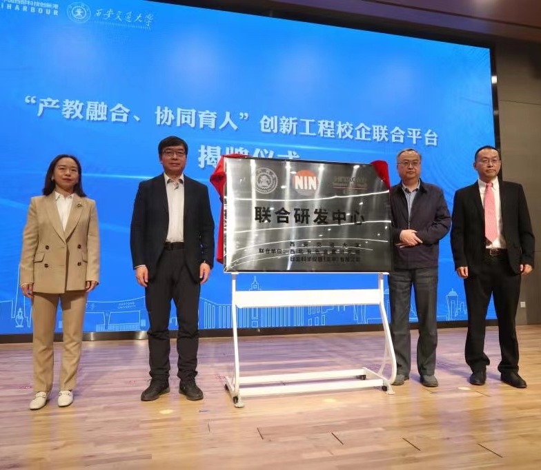中国工程院院士张平祥、中国科学院院士孙军、西安交大材料学院院长单智伟、日立科学仪器有限公司西安分部总经理蒲蓉共同为“西安交通大学—日立公司—西北有色金属研究院联合研发中心”揭牌。
