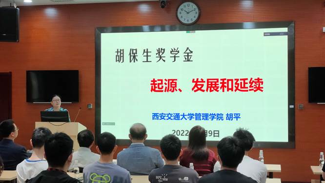 胡平以家人的视角分享了胡保生教授从求学到任教以及创立发展系统工程专业的历程、胡氏家族在捐助办学和资助困难学子求学的精神传承、胡保生奖学金的设立初衷以及发展等,并向大家展示了胡保生教授相关的宝贵图片资料。