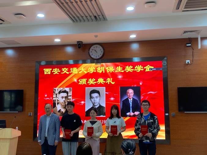 管晓宏、梁莉和冯祖仁分别为获奖学生颁发了获奖证书。获奖学生张洁代表所有获奖学生发言,她感谢了胡保生奖学金的设立,承诺会将胡保生奖学金的精神继续发扬光大,在求学和未来人生路上砥砺前行。