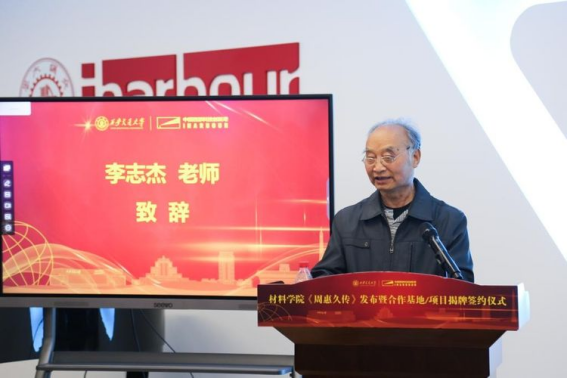 《周惠久传》作者代表李志杰与大家分享了传记的准备过程中的故事。他阐明传记的发行是交大传承弘扬西迁精神的实际行动,讲述了周先生秉承科学救国理念、坚持民族气节、铸就与实践西迁精神、培植桃李满天下、“五朵金花”彰春秋的辉煌一生,并向学校党委领导的关心和鼓励、材料学院领导和老师们的大力支持与辛勤工作致以感谢,表达了将周惠久学术思想发扬光大、辐射全国的美好愿望。