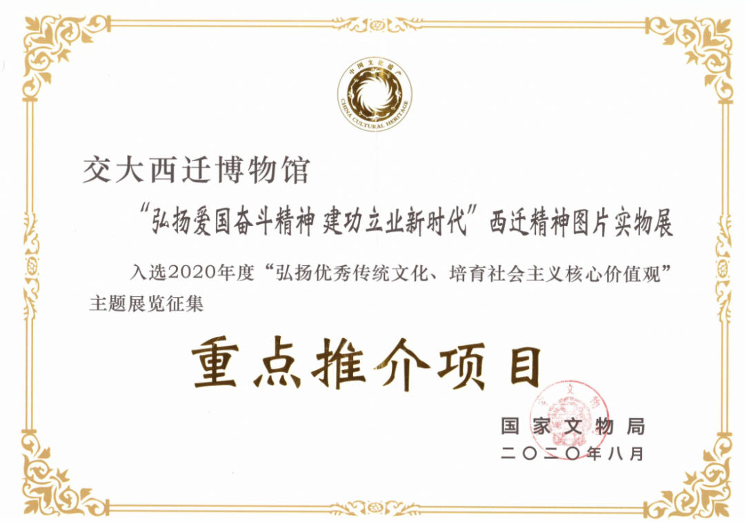 两年来,交大西迁博物馆获批全国妇女爱国主义教育基地、陕西省爱国主义教育基地、陕西省青少年教育基地等18个基地(教学点、示范点),被国家文旅部联合中宣部、中央党史和文献研究院、国家发改委选入“建党百年红色旅游百条精品路线”,被评为陕西省“学雷锋活动示范点”,成为弘扬西迁精神的重要阵地,开展爱国主义教育的重要基地,切实发挥红色资源育人功能的重要平台。
